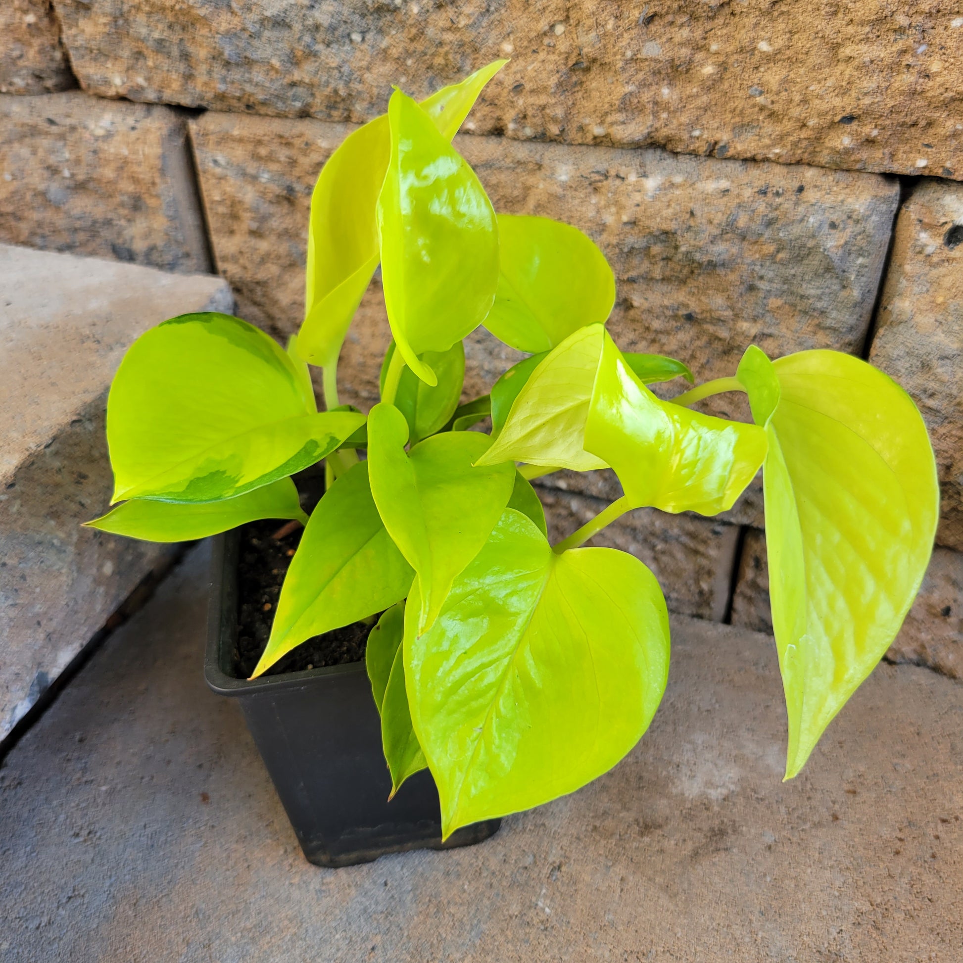 Neon Pothos' with its bright green leaves, works well in a hanging basket or climbing a post. Easy-to-care for in low or high light and relatively drought tolerant.