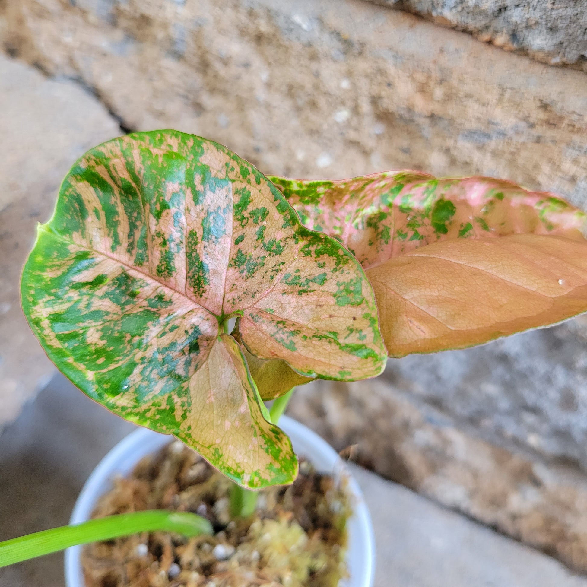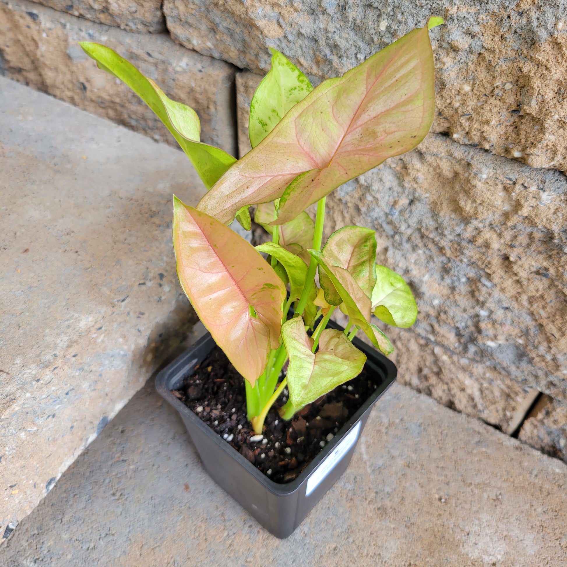 Syngonium 'Pink/Green' is an easy-to-care for, low-maintenance, climbing plant that does well in low to high light conditions and has a wonderful splash of pinks and greens.